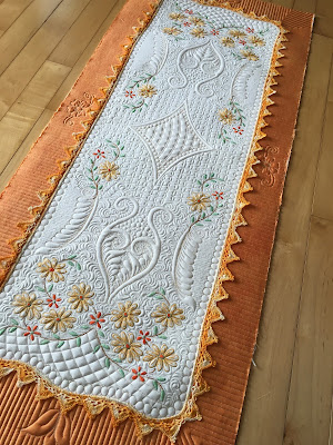 She's learned this beaded piping. That has to be tough to make the beads take the sharper points of a scalloped binding though, but it is a great finish.